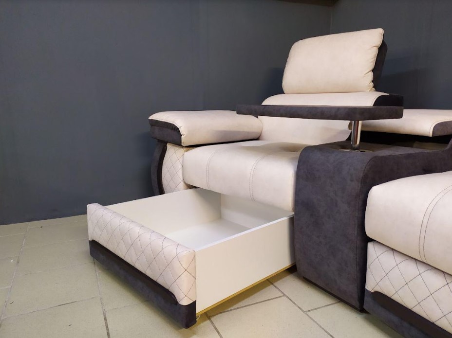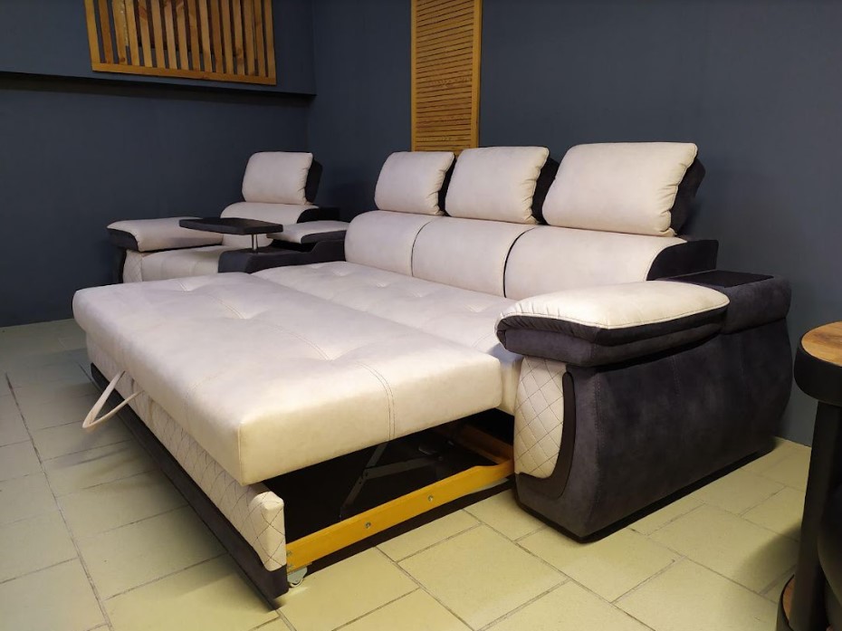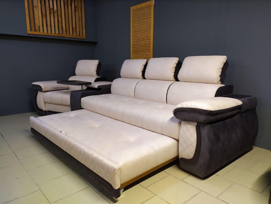 Набор, созданный для интерьеров, оформленных с заботой и даже со вкусом. Плюс выдвижные подставки для ног и спинки с подголовниками, наклон которых можно регулировать.