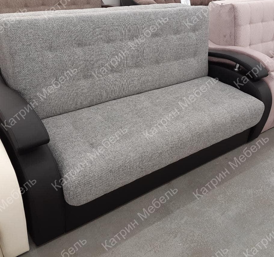 Диван аккордеон «Поло 3» серый с черными подлокотниками