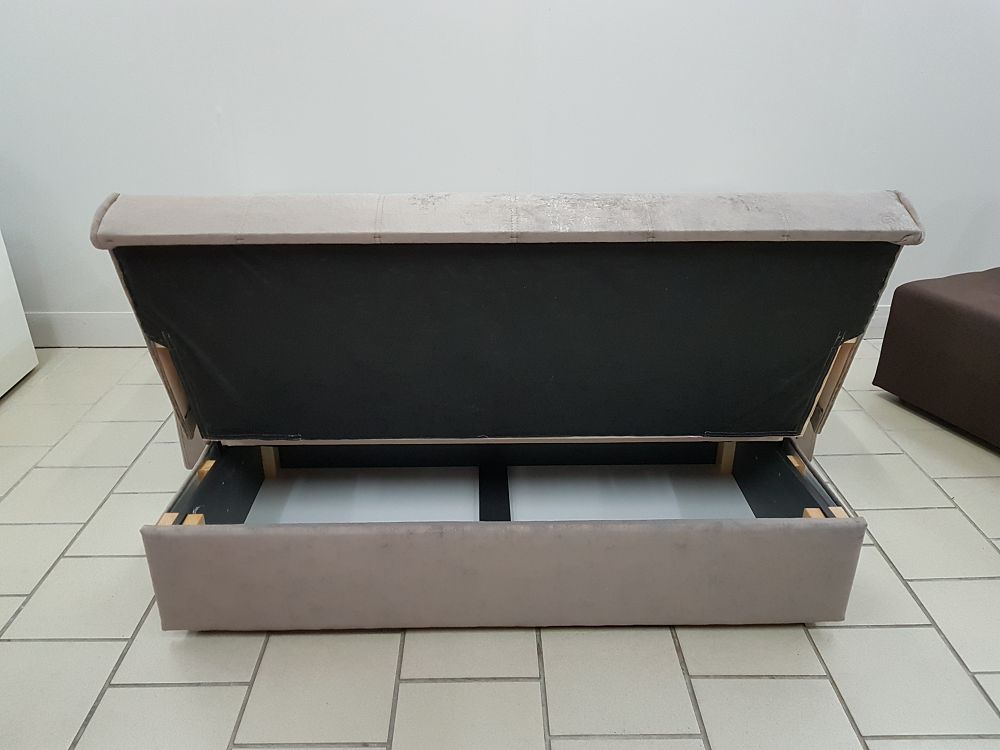 Диван с полувыкатным механизмом в бежевых тонах. Наполнение: пружинный блок.