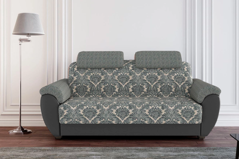 *Чтобы разложить диван, надо снять подголовники и откинуть подушки подлокотников.