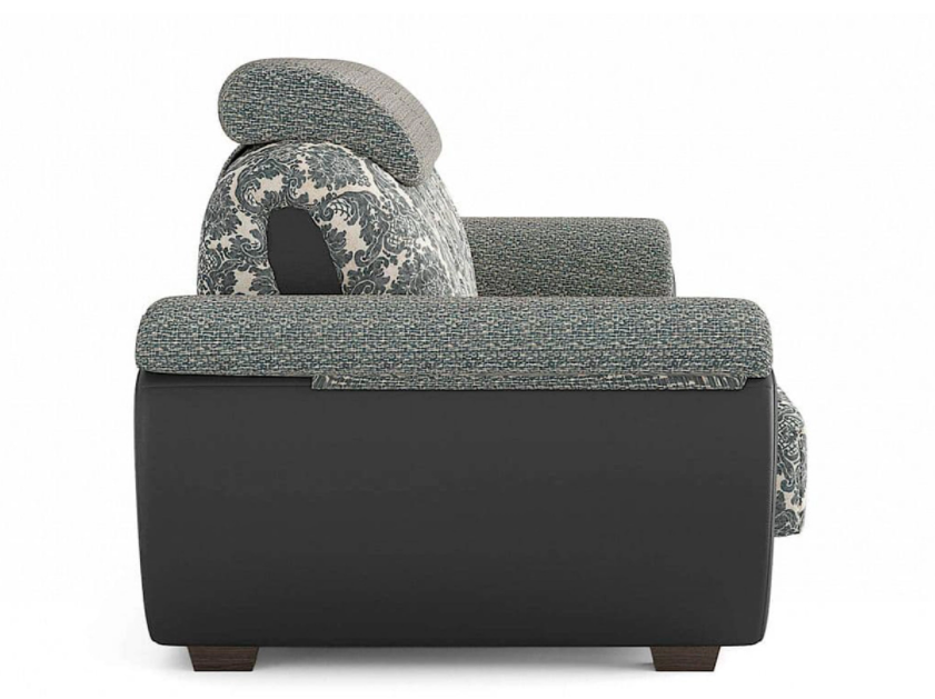 Современный стиль. Полки в боковинах и широкие деревянные подлокотники