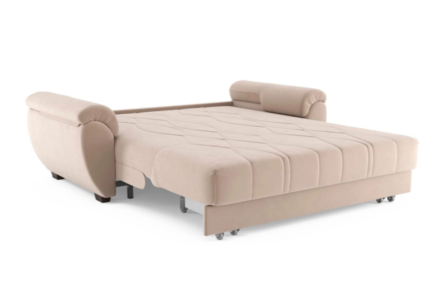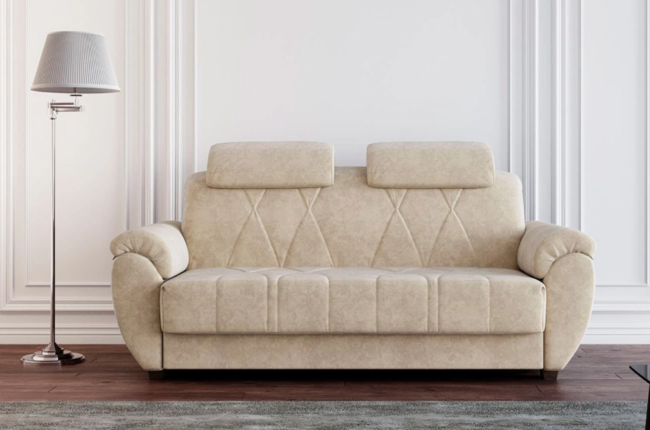 *Чтобы разложить диван, надо снять подголовники и откинуть подушки подлокотников.