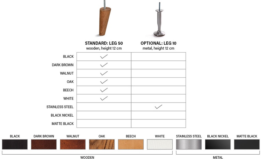 Функция: комплектация декоративными подушками различных размеров (приобретается отдельно). Наполнение сидений — независимый пружинный блок карманного типа Pocket Springs+HR пена 35 кг/м3, покрытые пеной Мемори и 200 гр. ватином; Спинка — холлофайбер (силиконизированное полиэфирное волокно); Подлокотник — пена 25-30 кг/м3. Ножки: Стандартная — тип 50 (деревянная), высота 12мм - 6 вариантов цвета: черный/ темно-коричневый/ орех/ дуб/ бук/ белый. Oпционная ножка: тип 10 (металлическая), высота — 12 см. В комплект входит 2 декоративные подушки размером 40×40 см. (в ткани/ натуральной коже дивана).