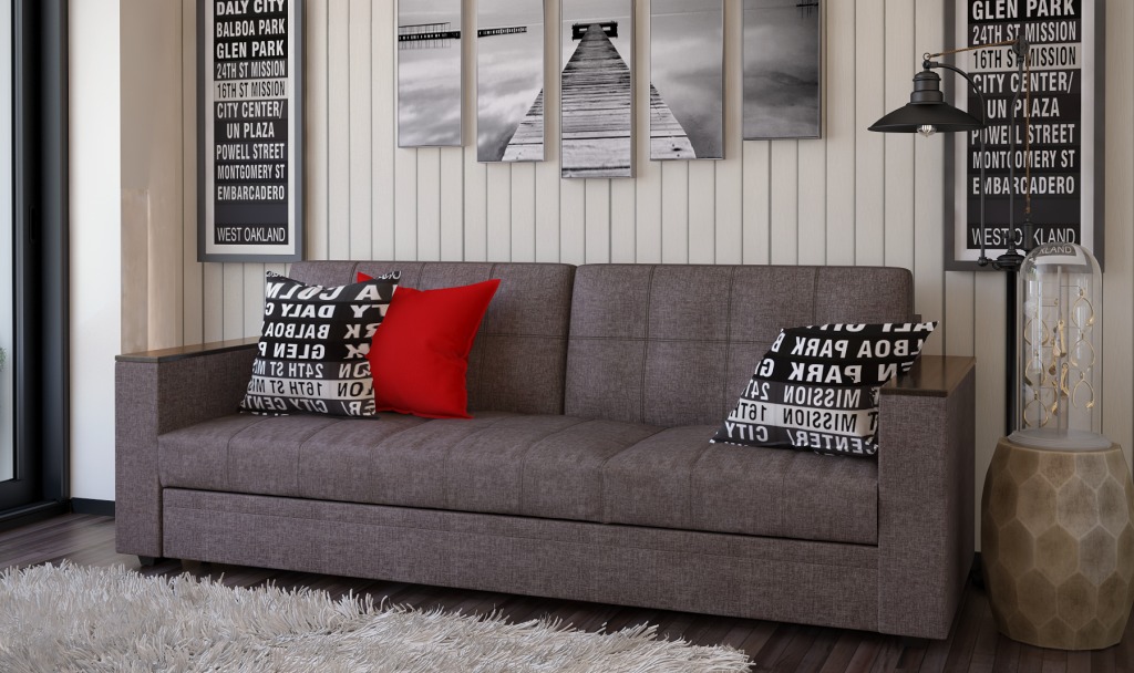 Компактный раскладной диван-«еврокнижка» с пенополеуретановым наполнителем.