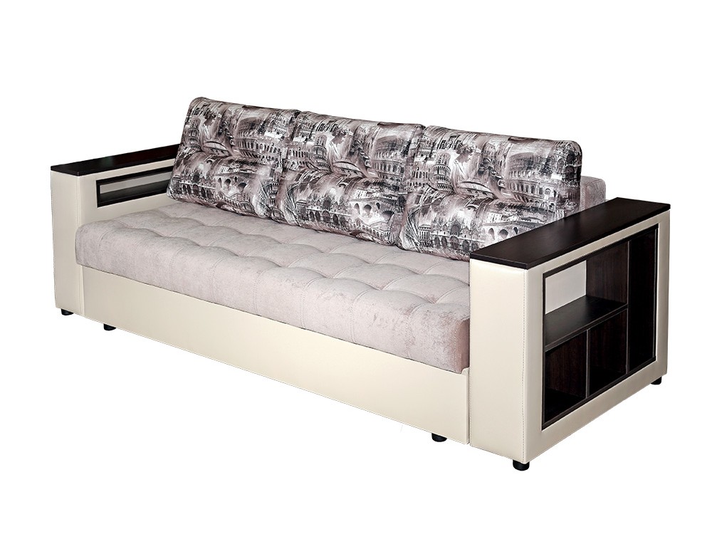 Механизм трансформации: клик-кляк. Обивка: светлая с ярким рисунком.