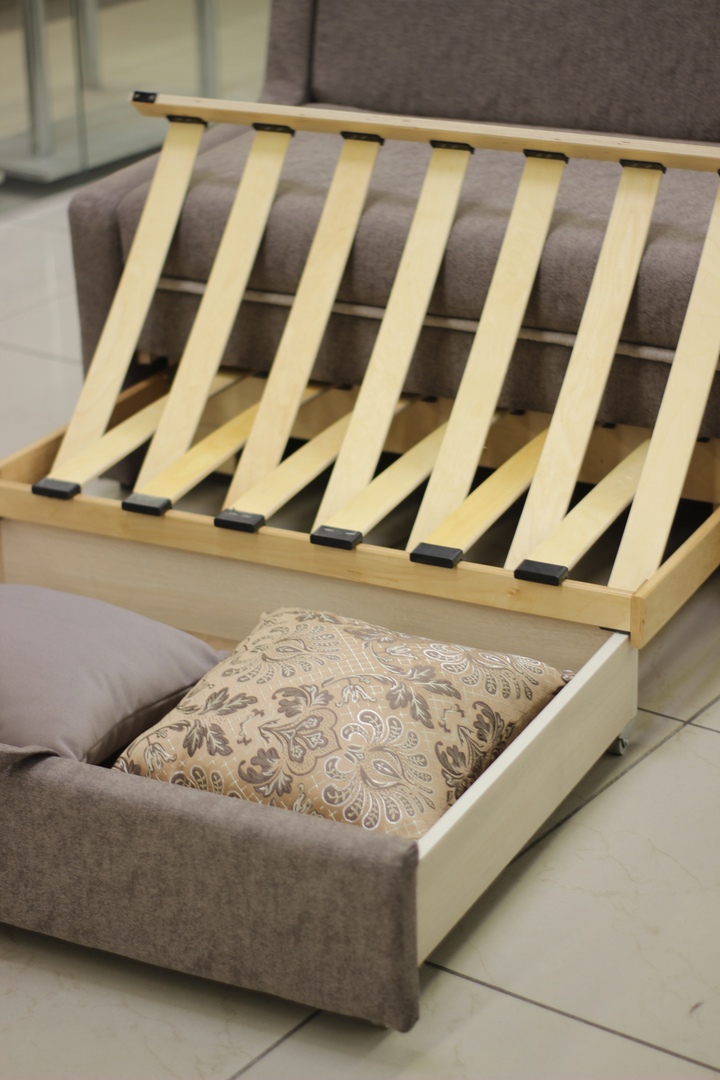 Малогабаритный диван с механизмом трансформации и ящиком для белья.