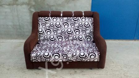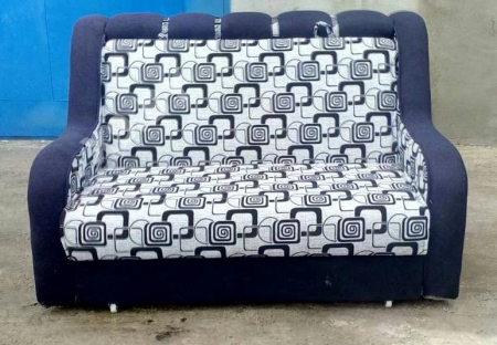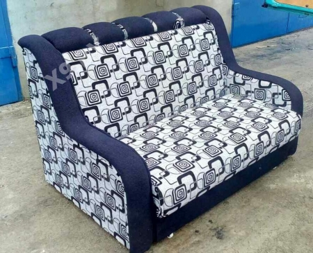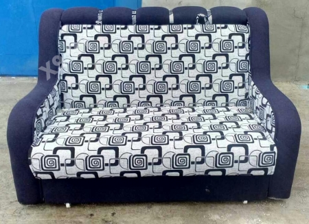 Хромированные опоры, большое спальное место, спинки-подушки, бельевой ящик.