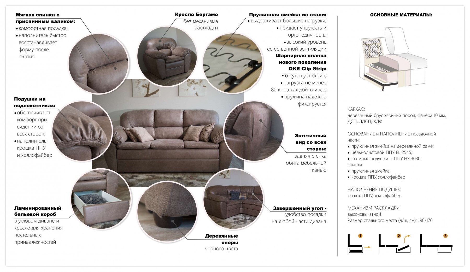 Габариты (ШхГхВ): 254х170х80 см (можно изменить). Обивка: ткань, экокожа, натуральная кожа. Более 1000 вариантов цвета.