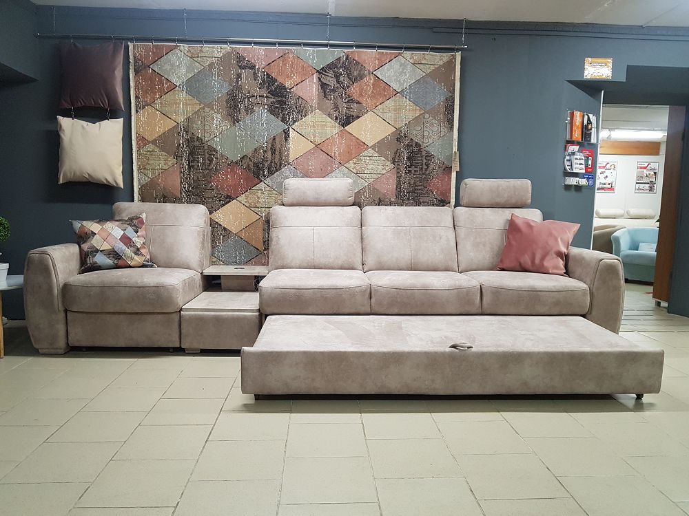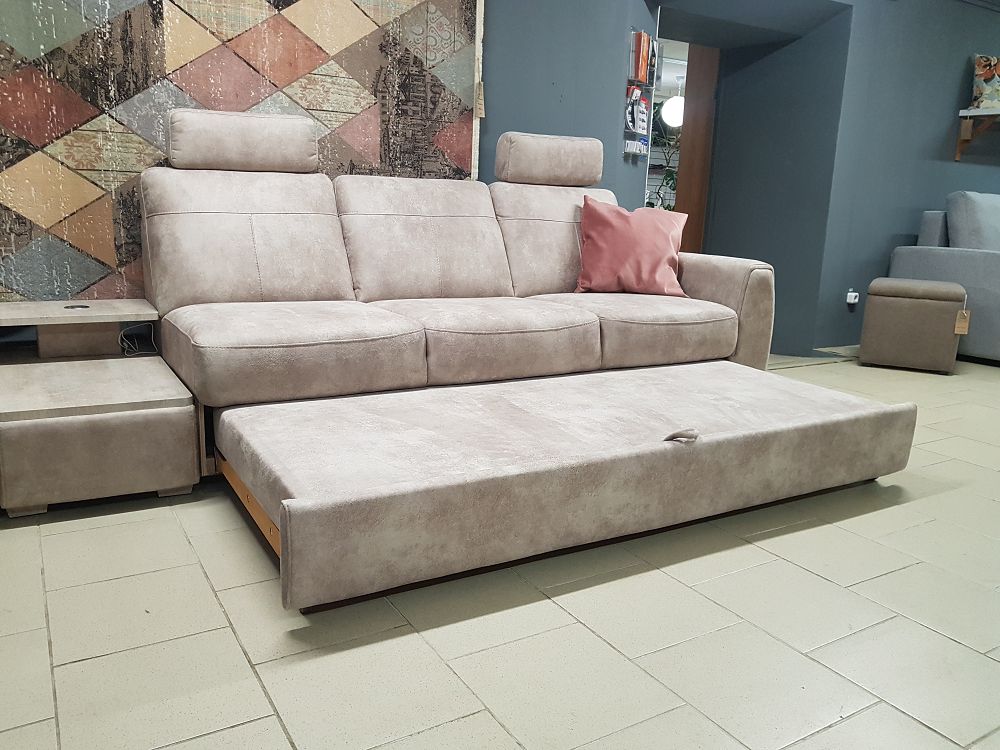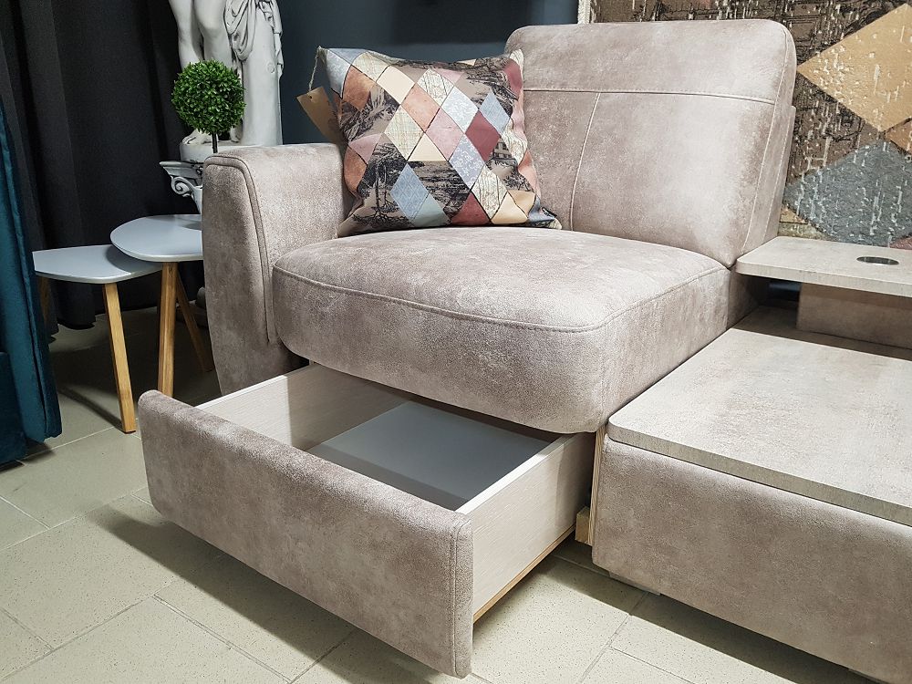 Удобный и функциональный диван со столом, механизмом трансформации и ящиком.