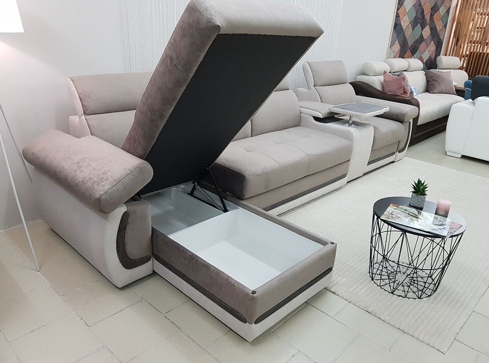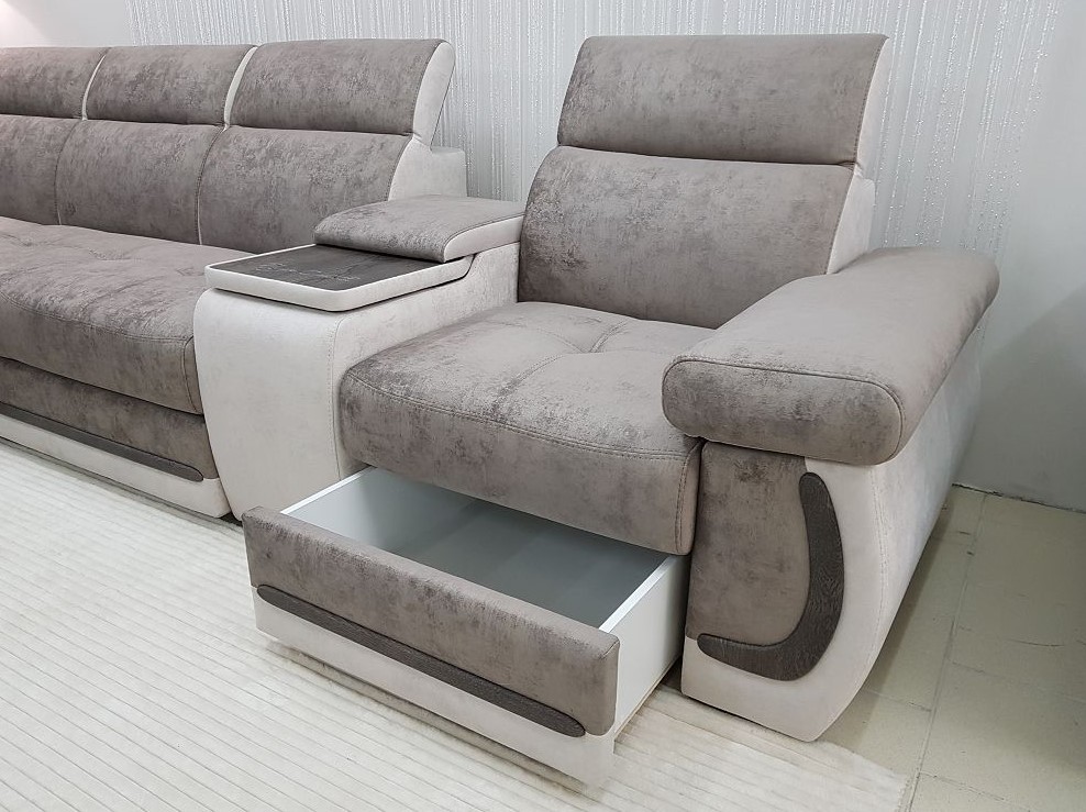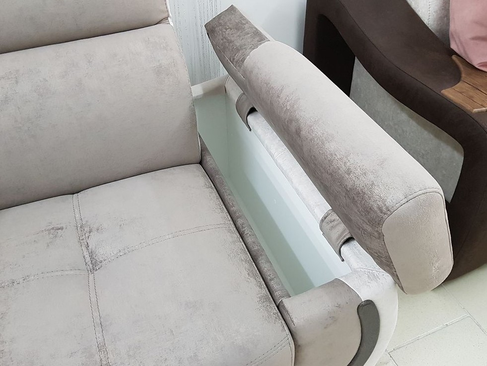 Размер (ШхВхГ): 2850х920х1600 мм. Спальное место: 1500х2250 мм. Широкие подлокотники с боковыми полками
