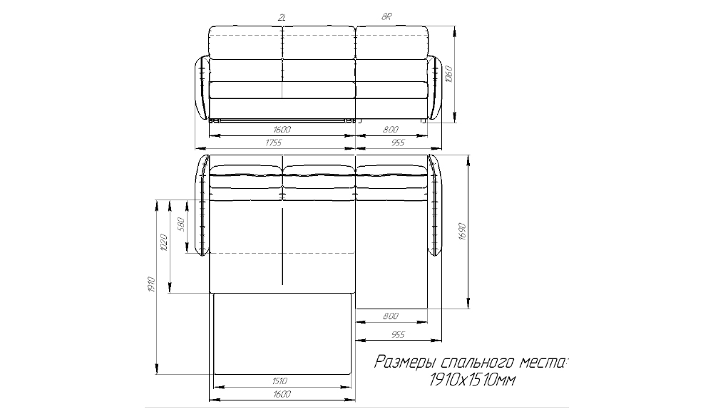 код 151633Габариты (ДхШхВ): 271х169х106 см. Блок независимых пружин. Механизм трансформации: Вперёд выкатной «Конрад».