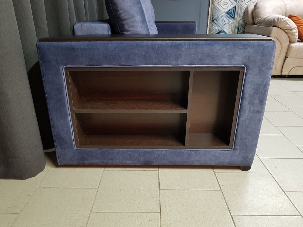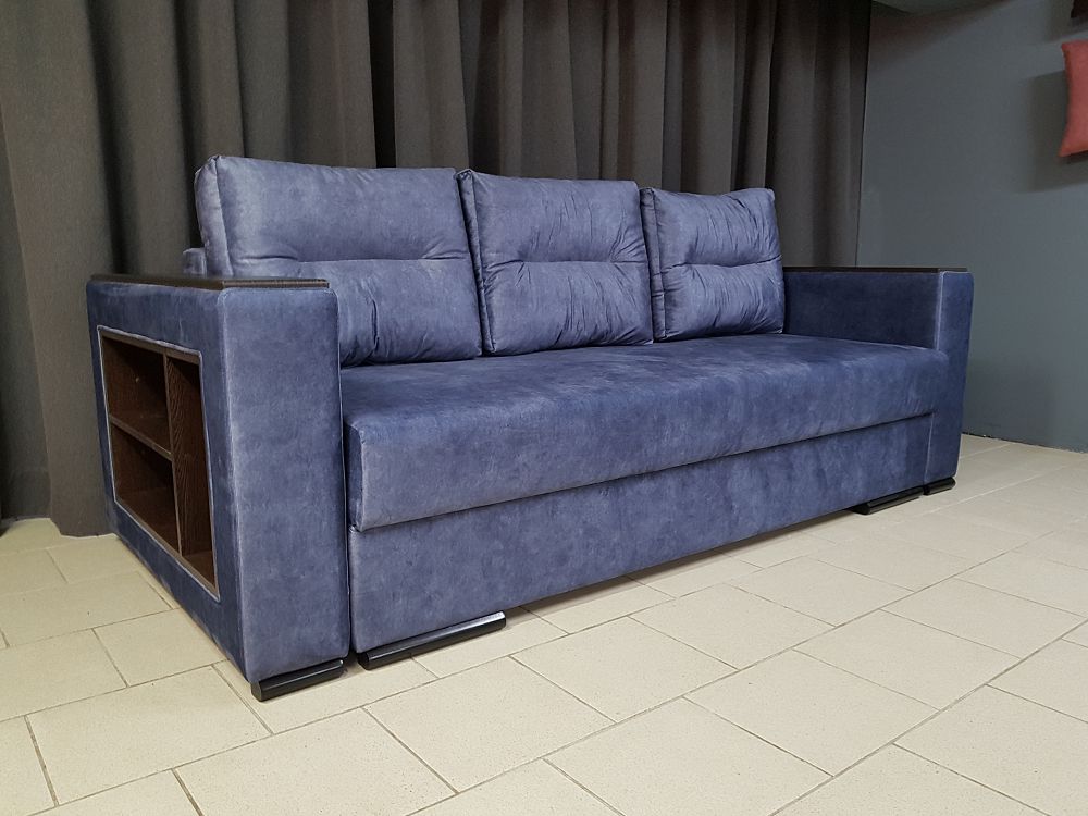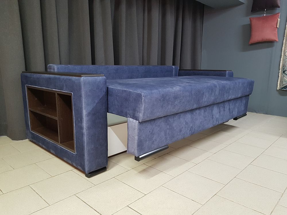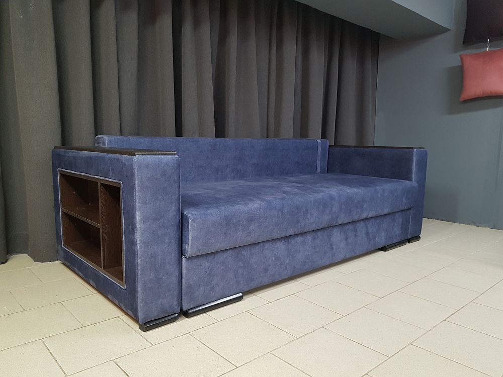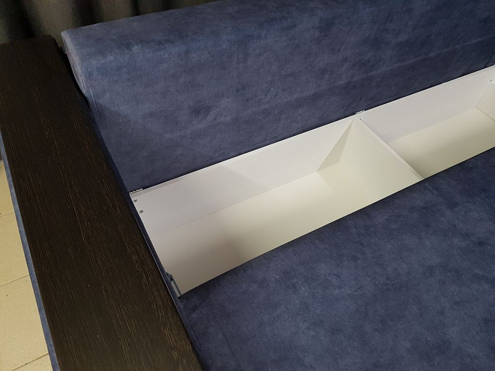 Мягкий диван малогабаритных размеров. Оснащен нишей для хранения.
