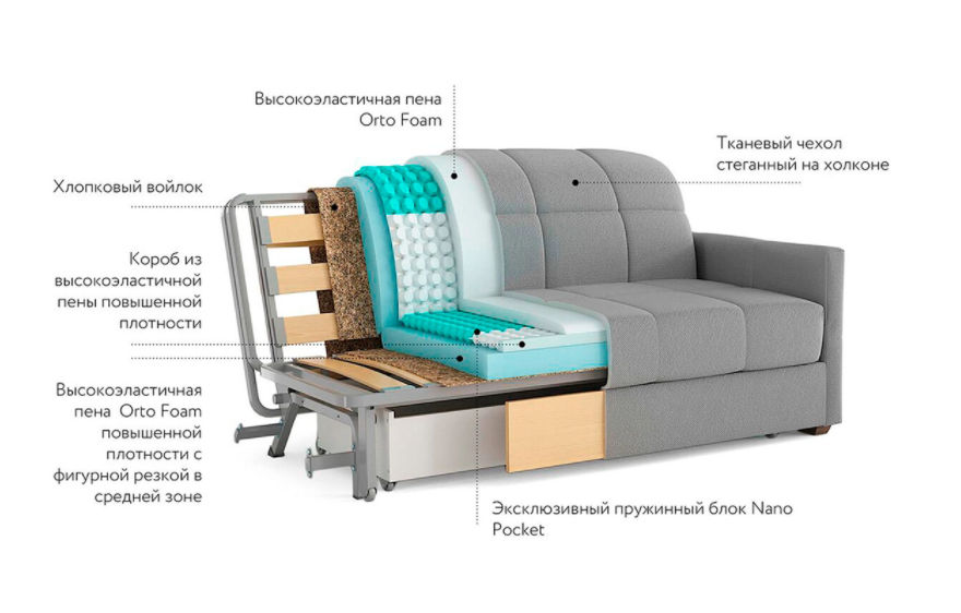 Высокий, уникальный для такого вида трансформации. В основе – 7-зональный блок независимых пружин NanoPocket, бережно поддерживает позвоночник в анатомически правильном положении.