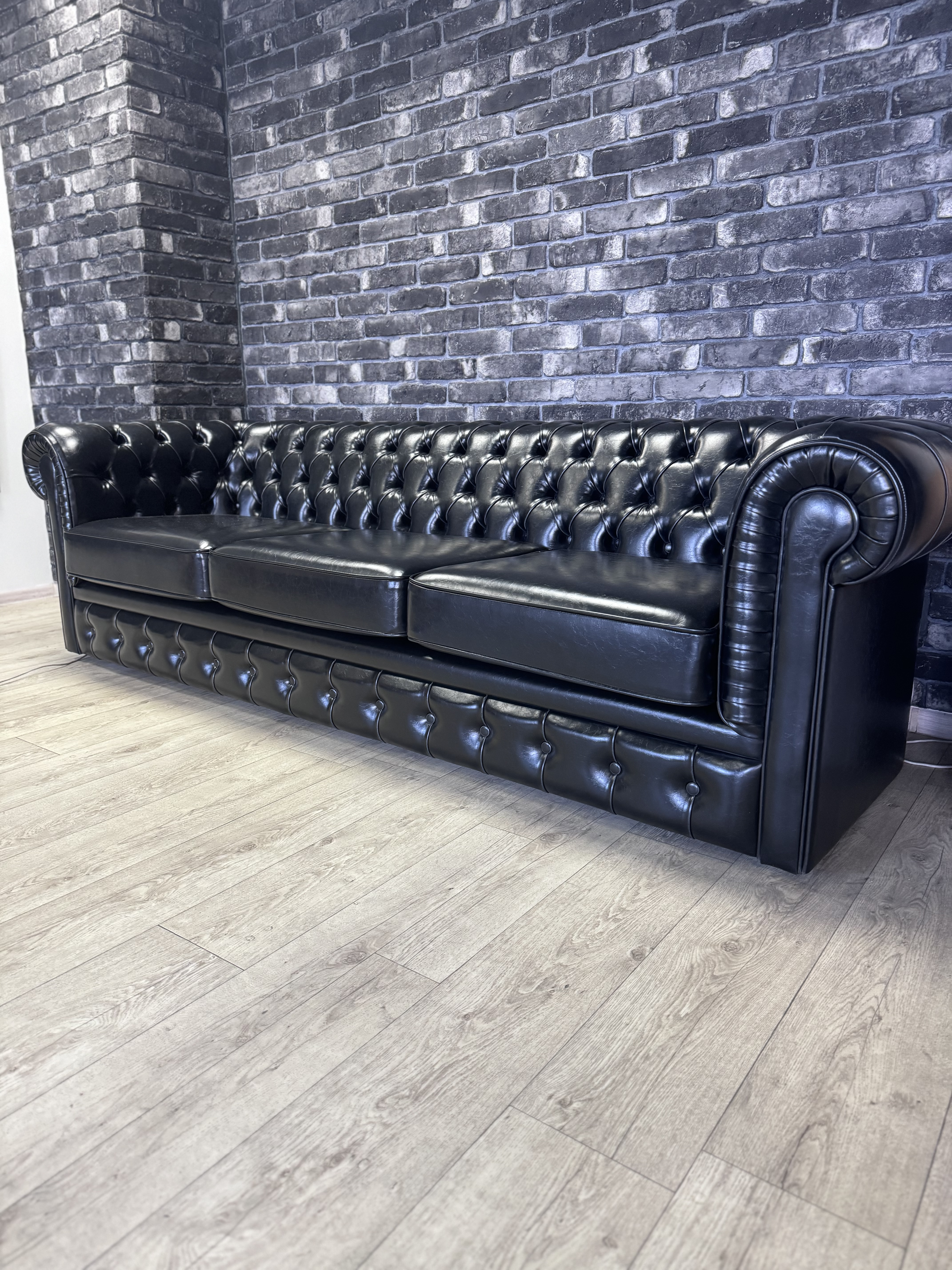Диван Честер черный трехместный