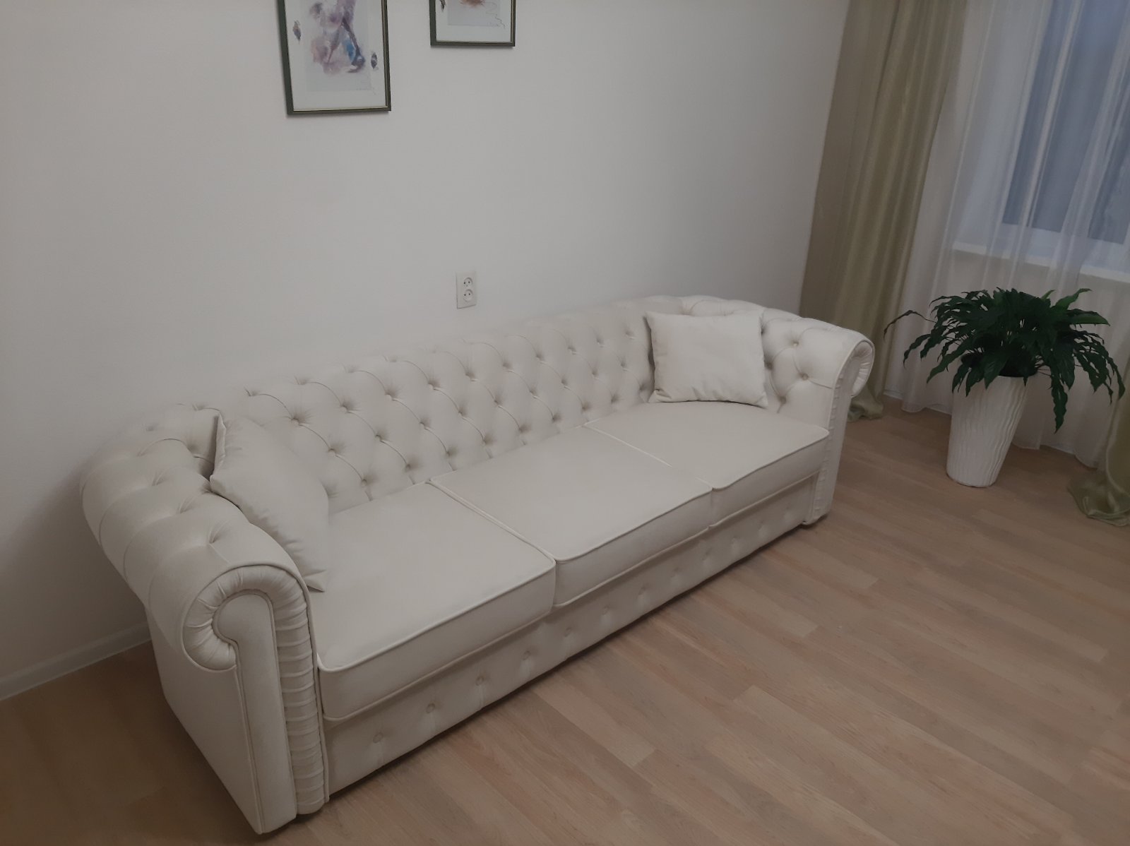Диван Честер трехместный белый
