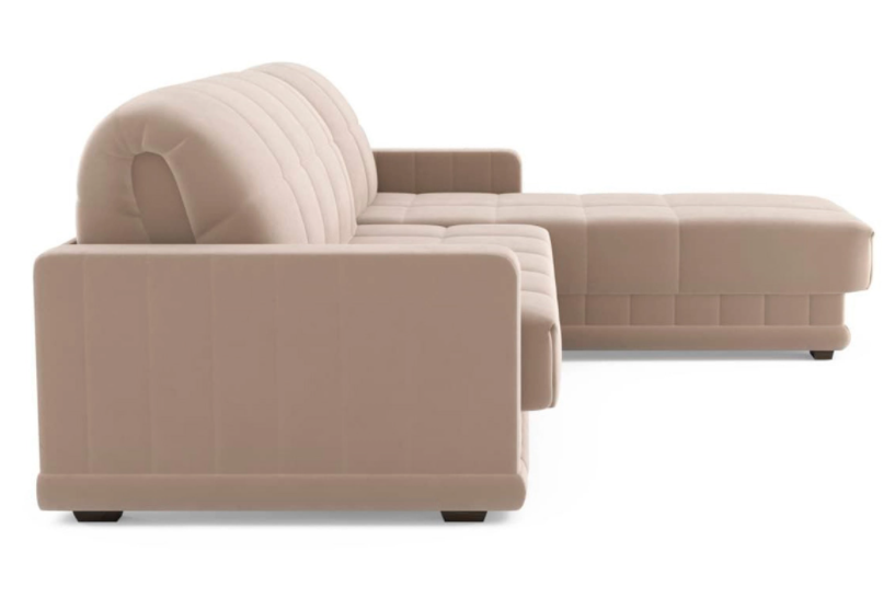 В основной части дивана подушек нет. В угловой части подушка канапе имитирует боковую накладку и состоит из 2-х частей: внутреннюю подушку можно использовать как валик – под голову, спину или ноги, внешнюю – как объемный коврик или декоративный пуф.