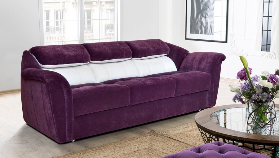 Фиолетовый угловой диван с пуфом