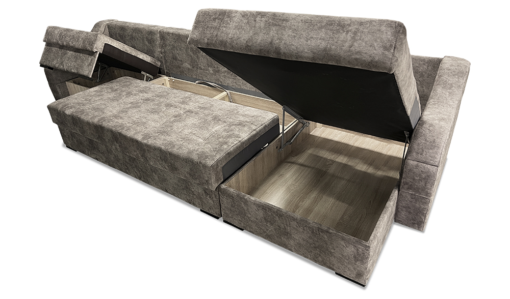 Диван угловой раскладной Денвер-2Н XL большой и удобный в эксплуатации, легко трансформируется в кровать (принцип трансформации аналогичен Денверу-2Н). В приставной секции дивана есть дополнительный ящик для постельных принадлежностей. Угол в диване взаимозаменяемый.