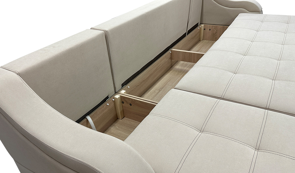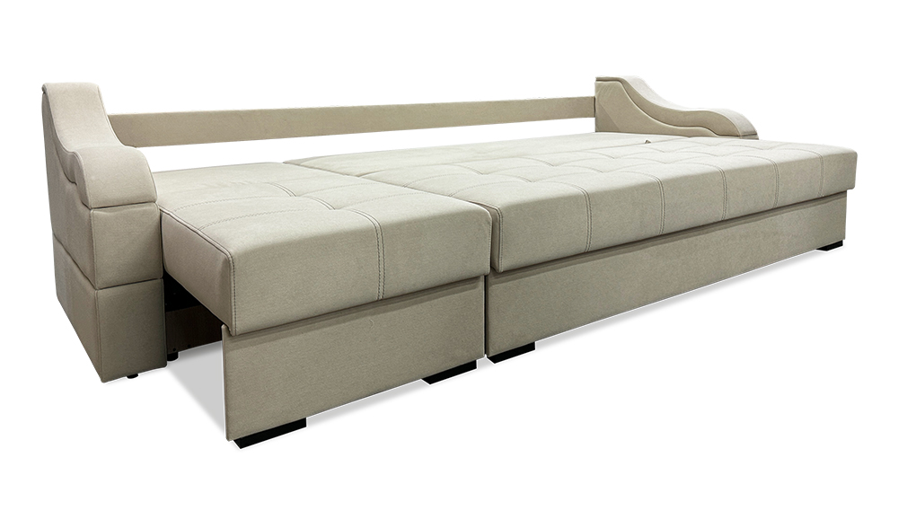 Особенностью этого дивана является дополнительный сектор, благодаря которому диван можно сделать угловым. В секторе есть ящик для белья и раскладывается он с помощью механизма «Тик-так». Сектор устанавливается с любой стороны, что является неоспоримым преимуществом если в планах будет переместить диван в другую комнату. Большой и качественный, с удобным механизмом трансформации, мягкий элемент на основе блоков независимых пружин.