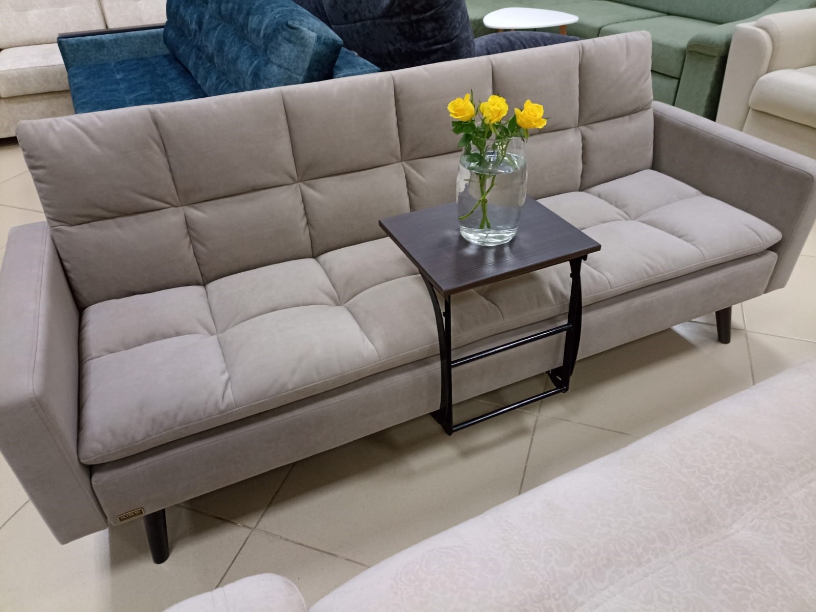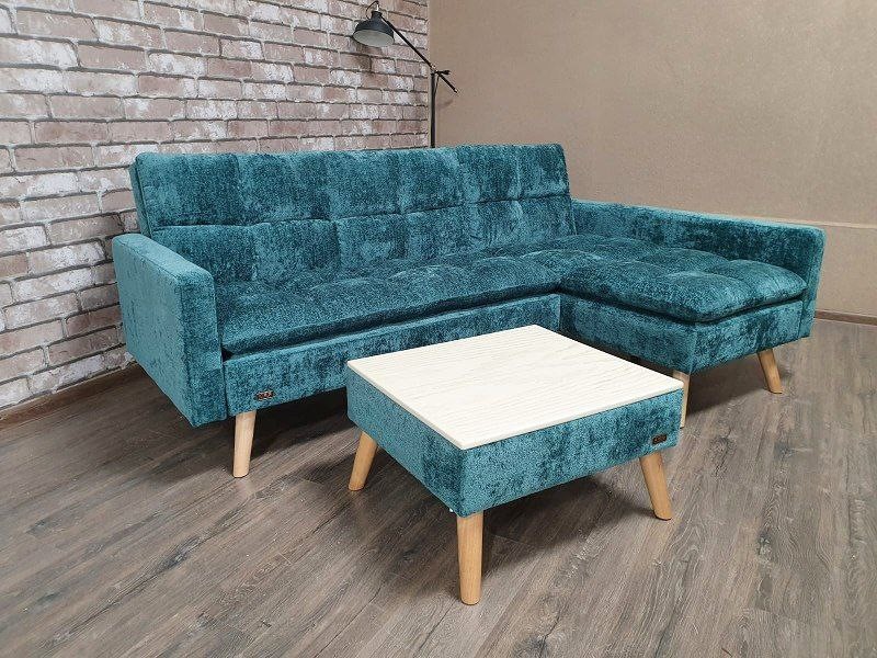 Выполнен в темно-синем цвете. Декоративные подушки. Механизм: еврокнижка.