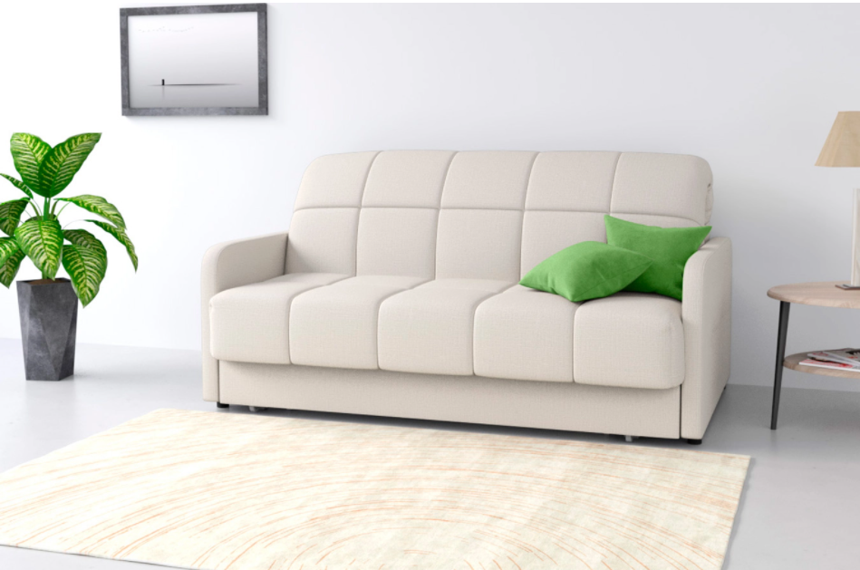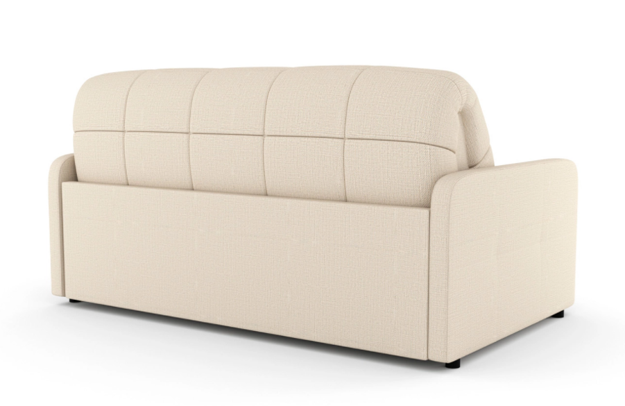 Диван Domo – c усовершенствованным механизмом трансформации «Аккордеон». Пружины-змейки на раме посадочной части обеспечивают ее прочность и безупречно ровный внешний вид. Ламели на рамах спинки и изголовья придают дивану округлую форму. Планка изголовья на механизме трансформации исключает опускание спального места.