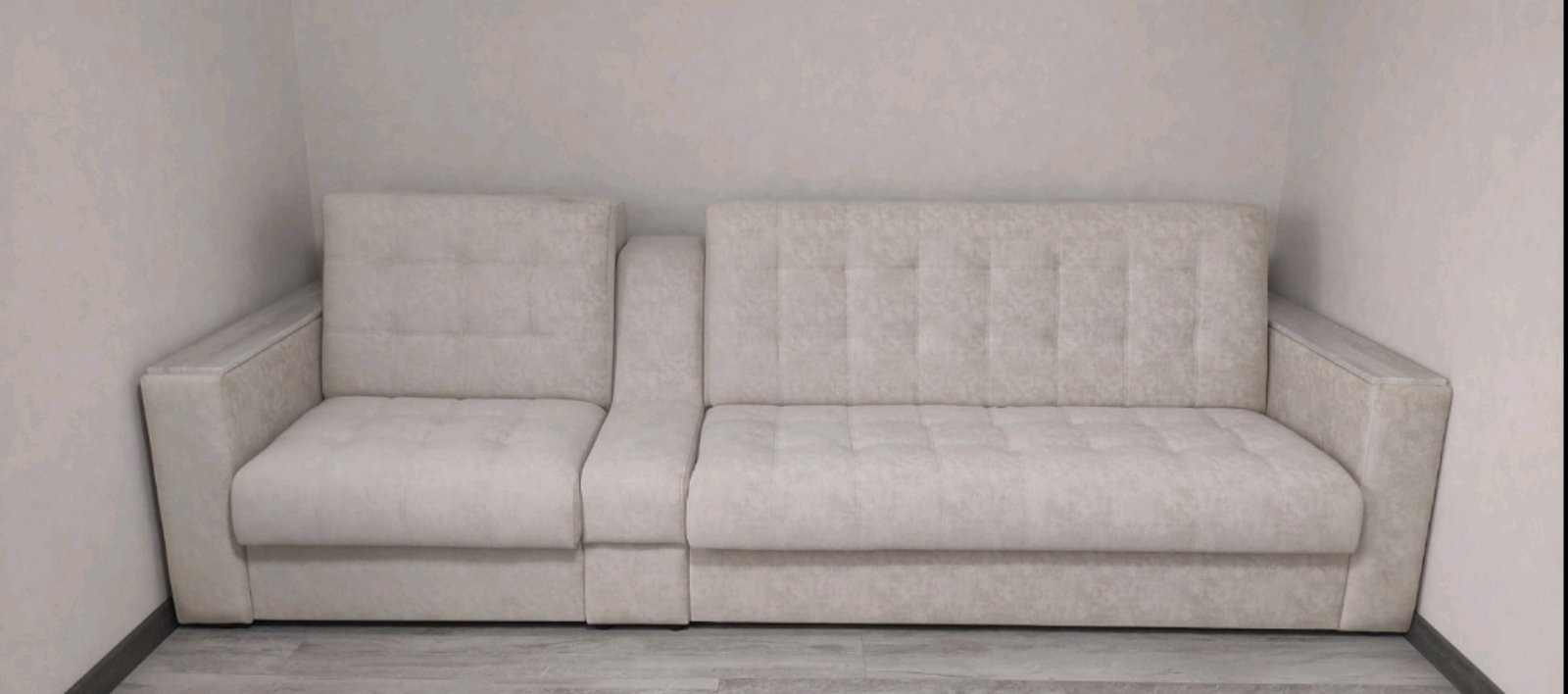 Четырехместный угловой диван. Подушки в комплекте. Просторное спальное место.