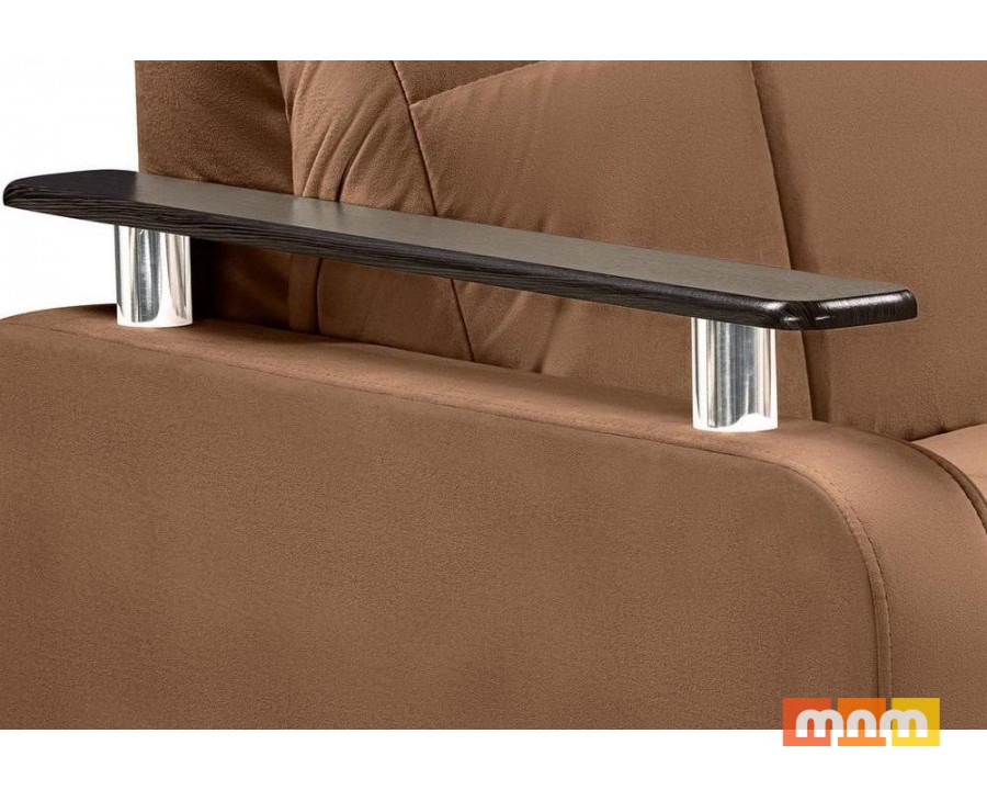 Ящики в подлокотниках и столик. Настил: ортопедические латы + ППУ.