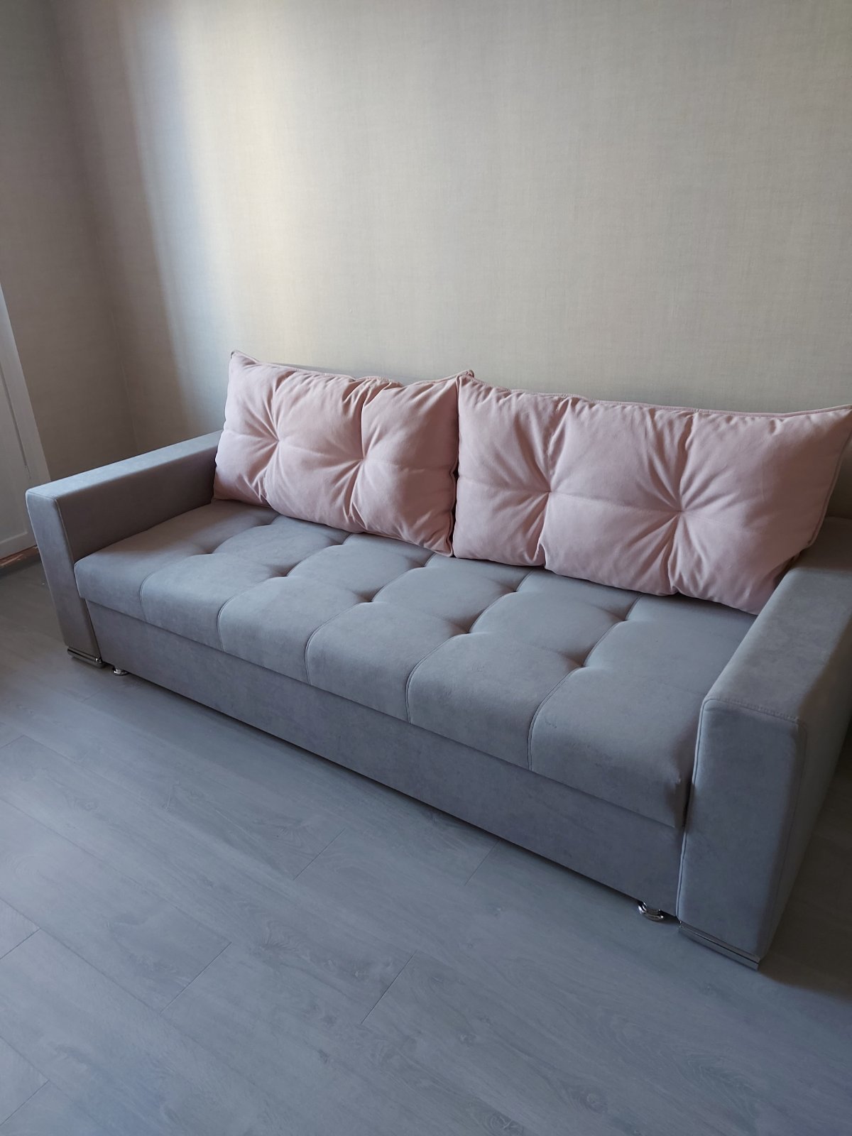 код 111267Современный прямой диван с механизмом трансформации «еврокнига». Спинки-подушки.