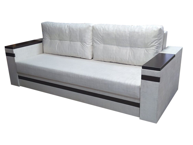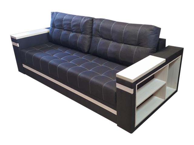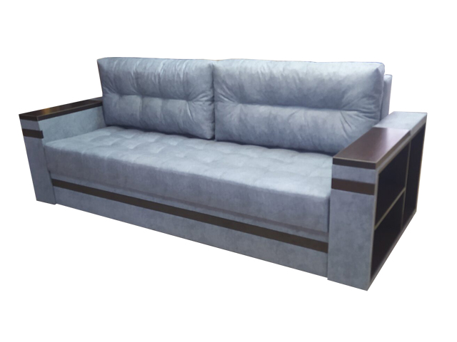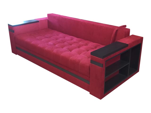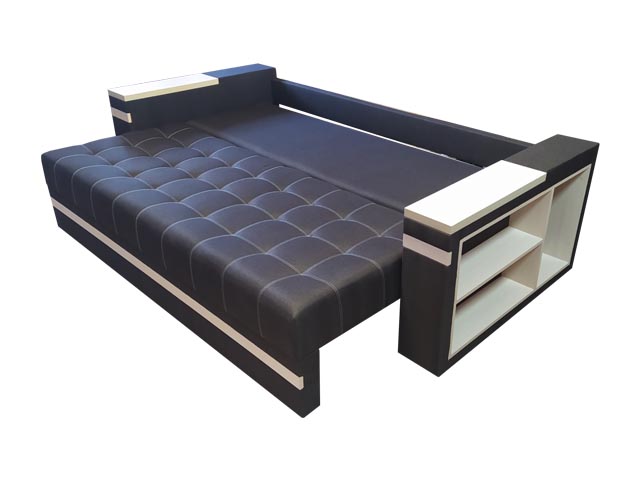 код 145821Размер спального места: 2000х1550 мм. Подлокотники с нишами и накладками из ЛДСП.