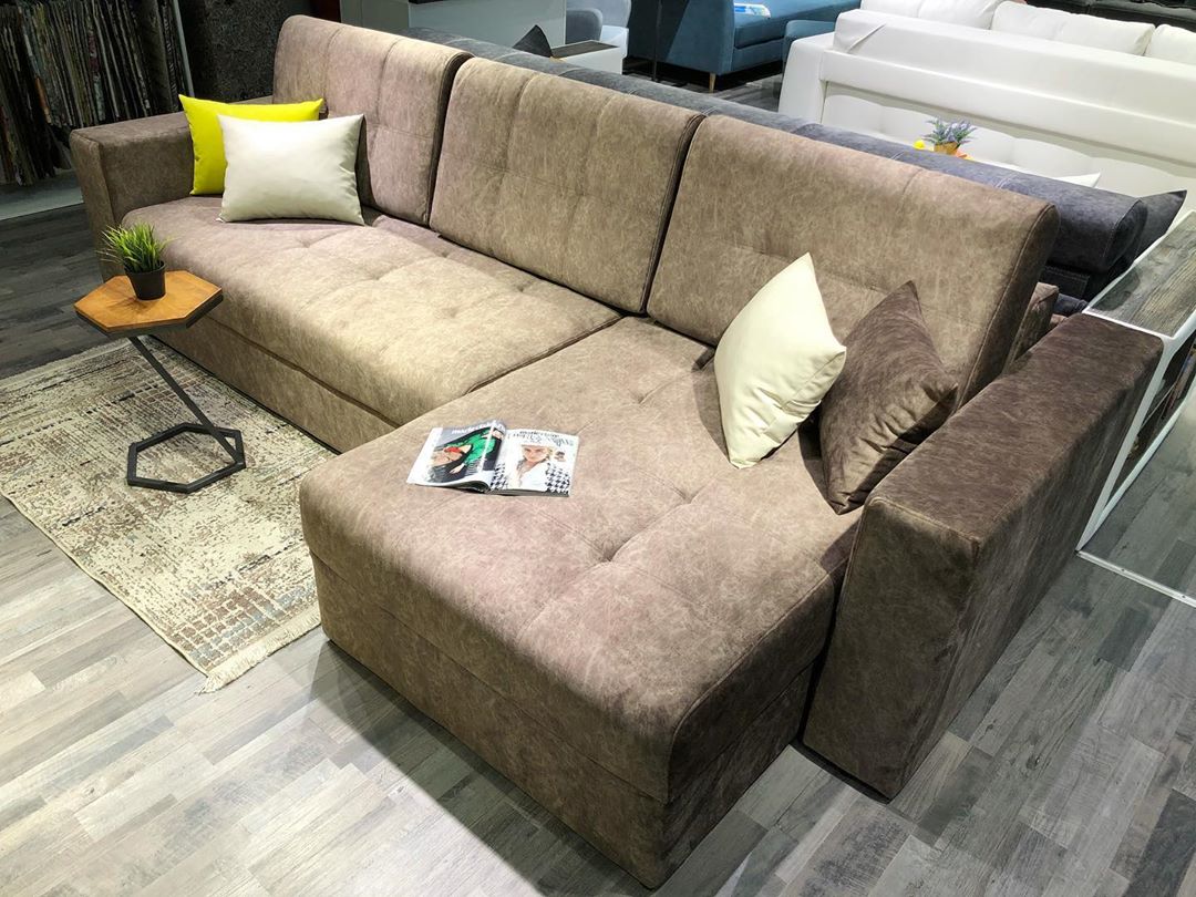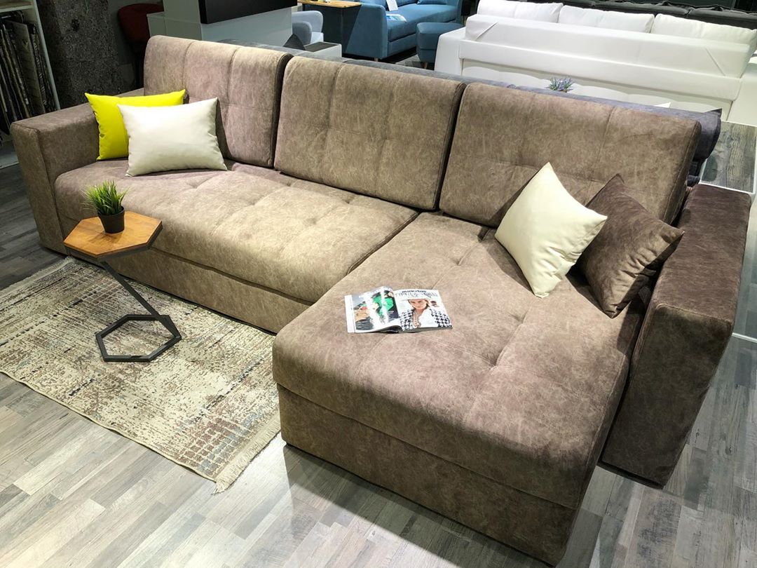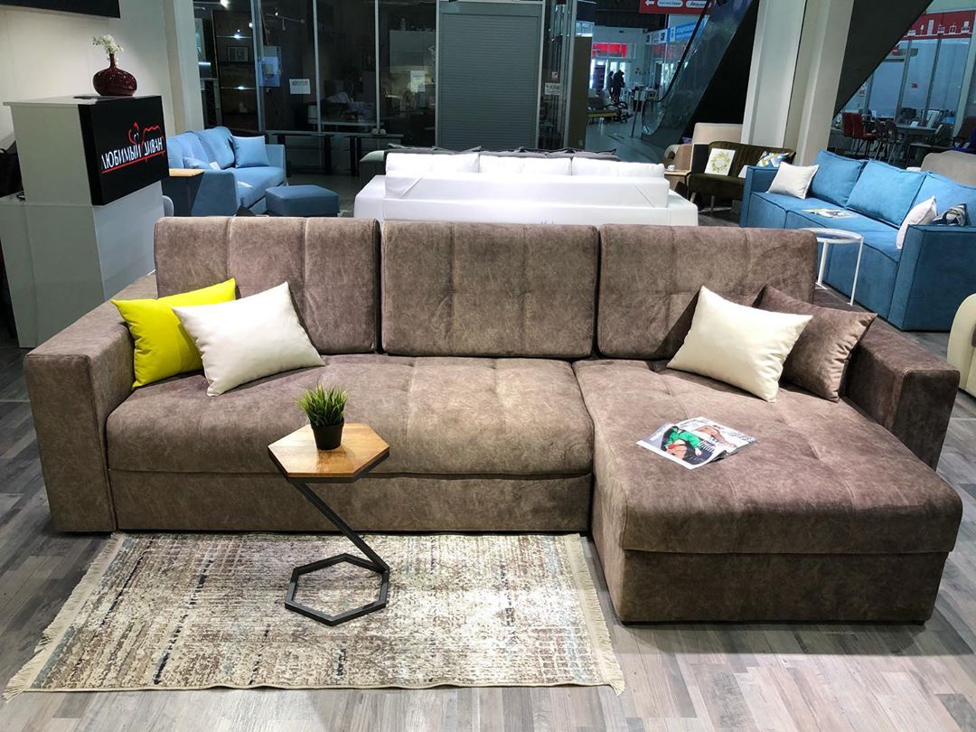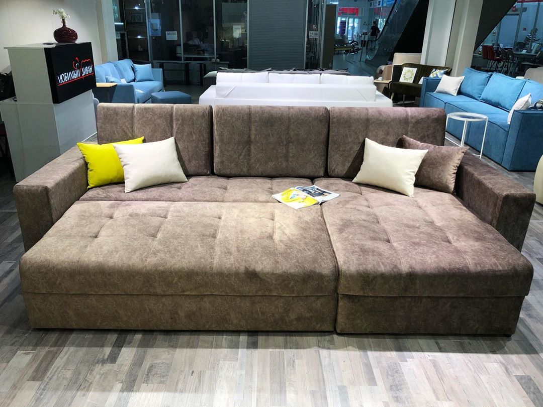 Современный диван в светлой обивке. Удобный и надежный механизм трансформации.