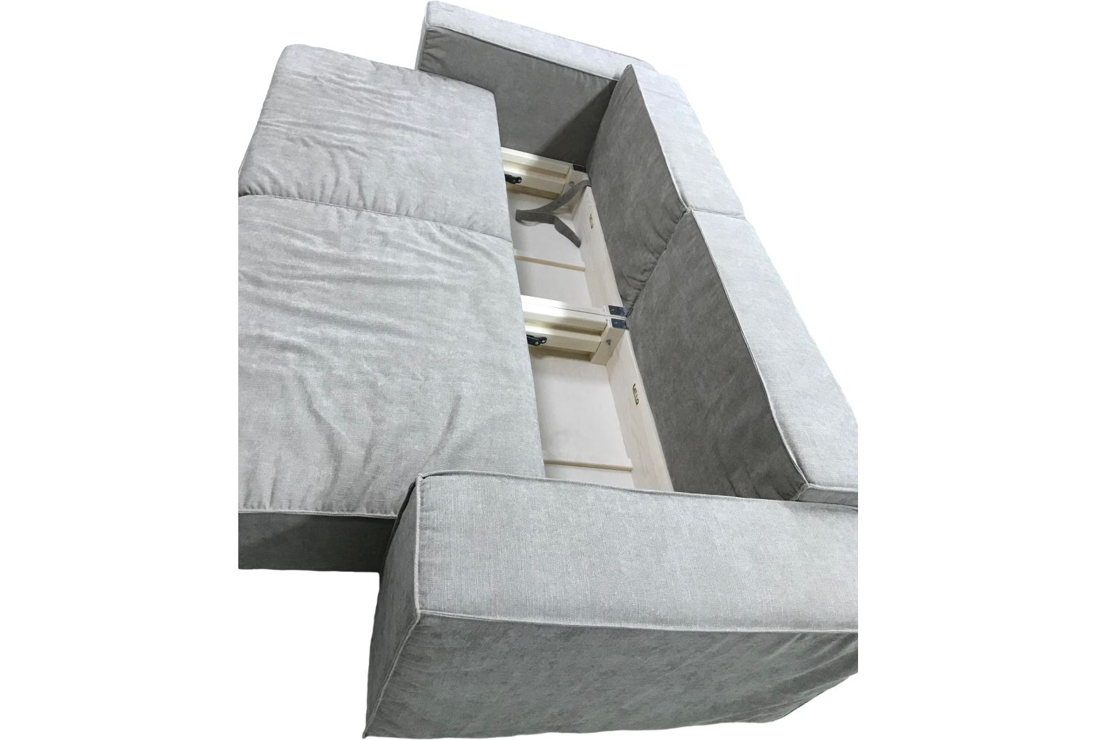 Мягкий диван малогабаритных размеров. Оснащен нишей для хранения.