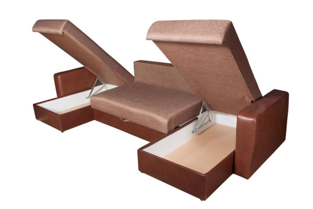 Размер (ШхВхГ): 2850х920х1600 мм. Спальное место: 1500х2250 мм. Широкие подлокотники с боковыми полками
