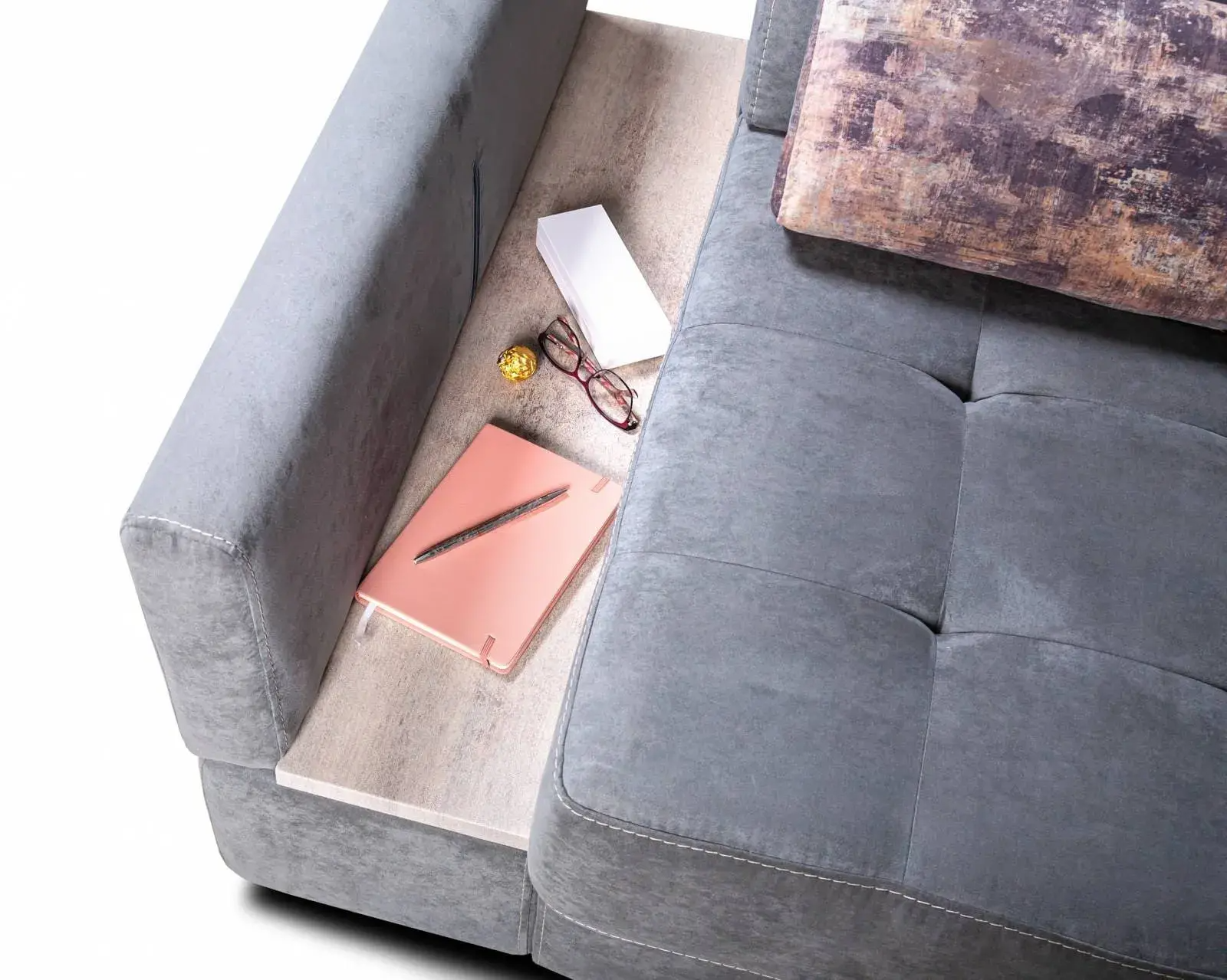 Спальное место: 240х150 см. Наполнение: Независимый пружинный блок + латексный ппу. Обивка: Износостойкая замша.