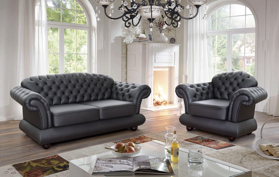 Диван «Гранд-Честер» представляет собой очень красивую и роскошную модель, которая с легкостью украсит любое помещение. Диван выполнен в классическом стиле со спинкой переходящей в изогнутые подлокотники. Главной изюминкой модели является ее английская стяжка. Диван установлен на фигурные ножки в эмали.