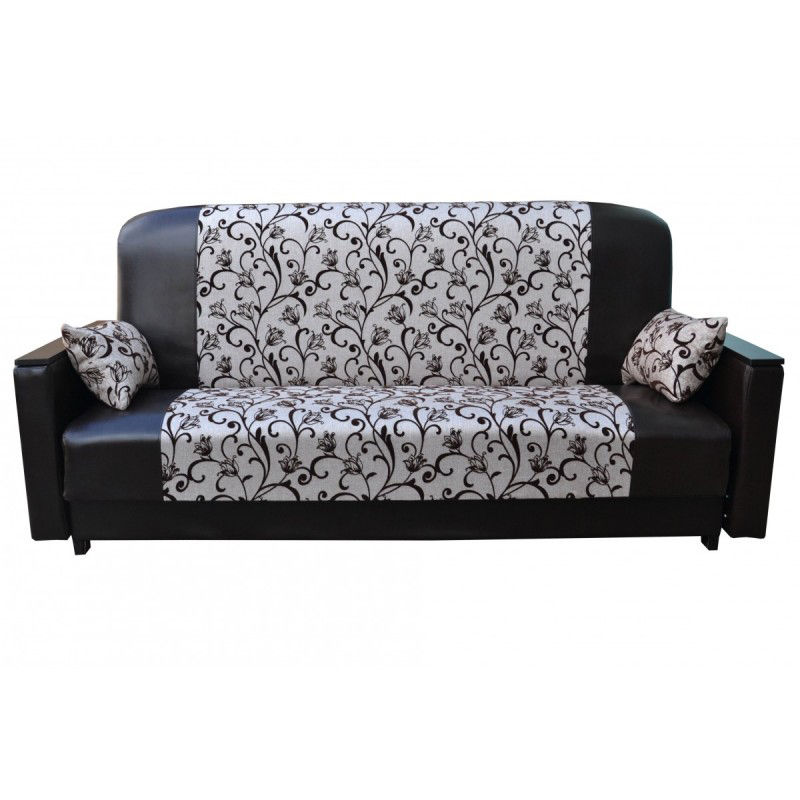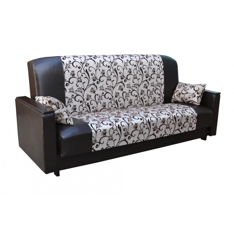 код 85348Кожаный диван с цветочным принтом посередине. Механизм трансформации: книжка.