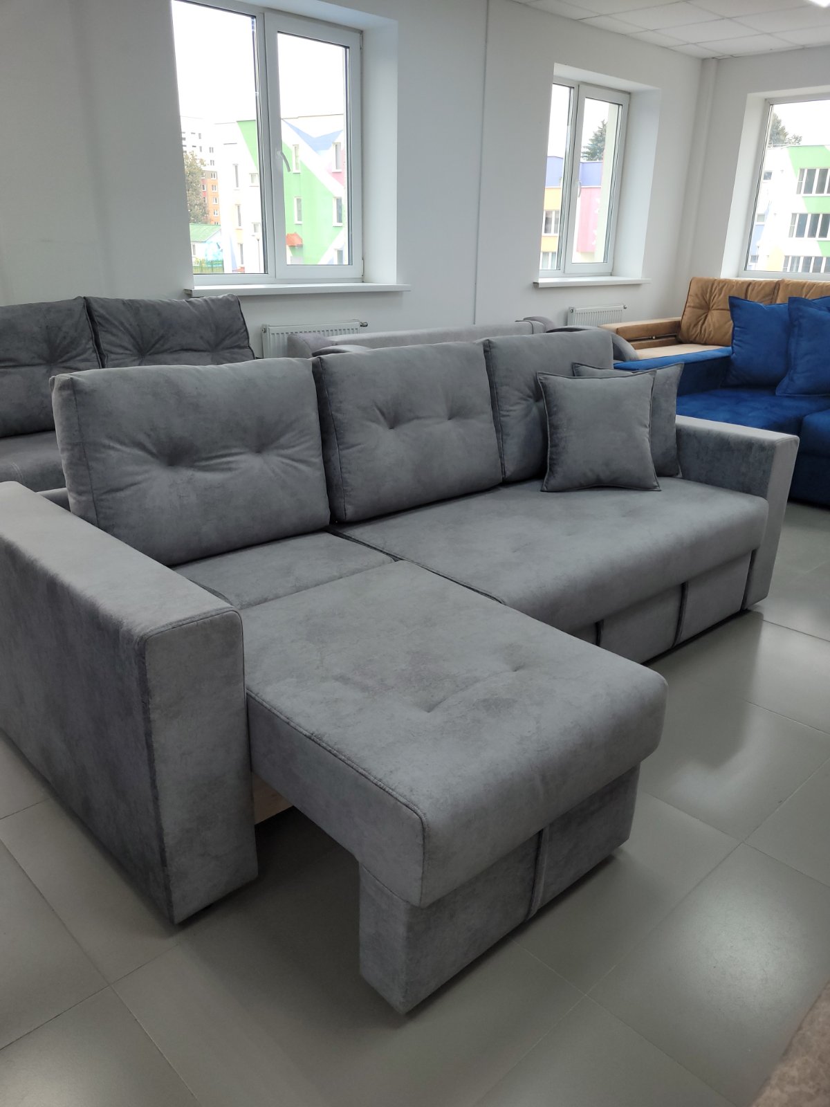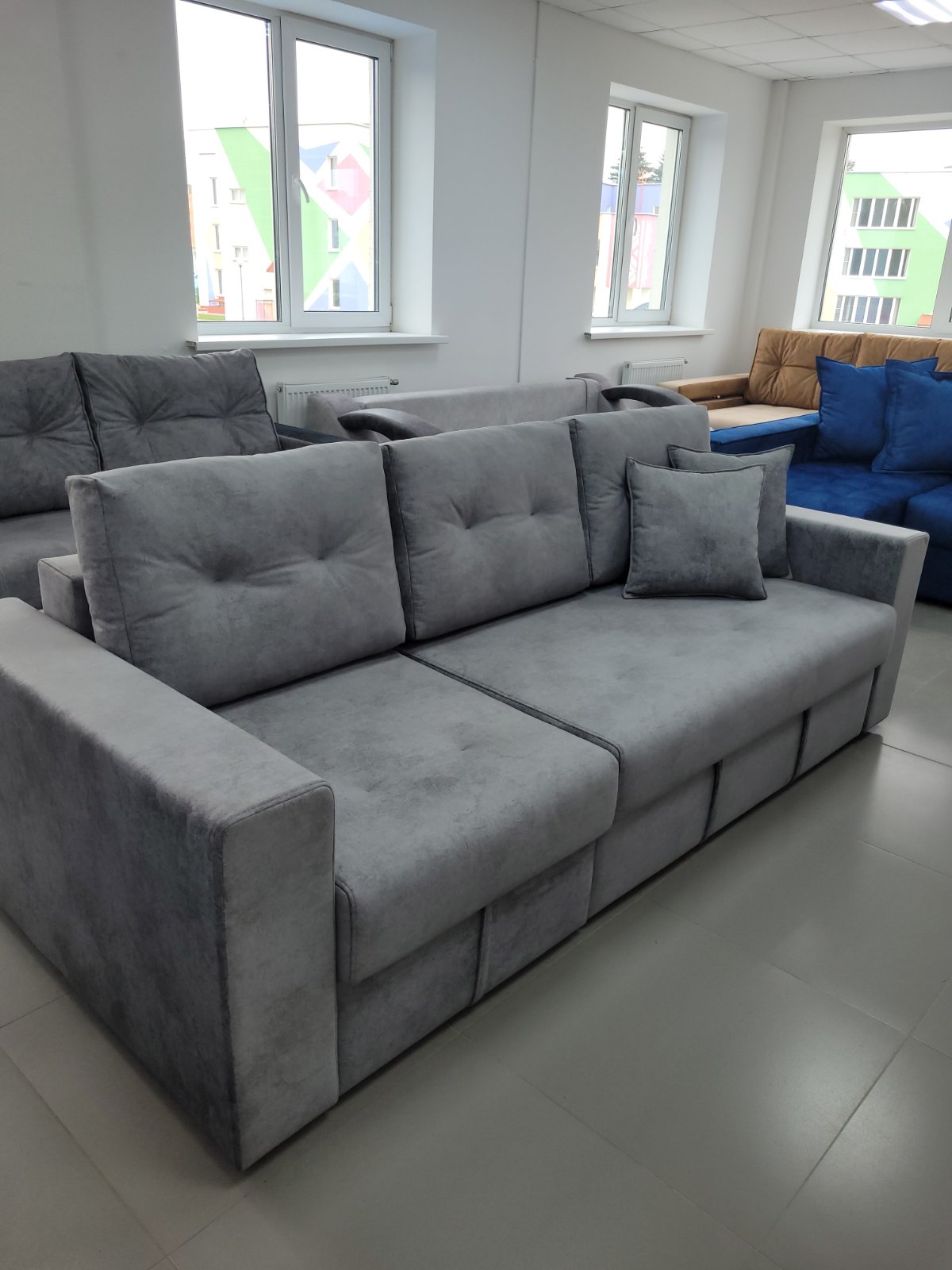 Удобный и простой механизм трансформации. Модель в светлой обивке со стяжкой.