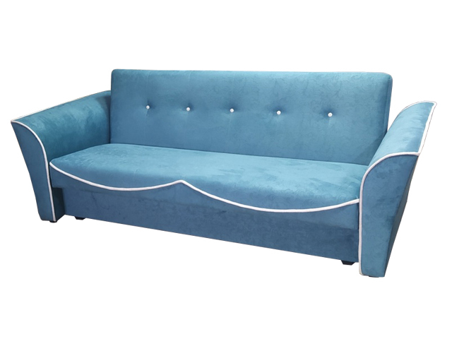 Диван-книжка Барон велюр - это оригинальная по дизайну модель дивана-книжки, выделяющаяся необычной формой подлокотников, контрастным декоративным кантам и пуговицами на спинке. Данный диван-кровать отлично подходит для ежедневного сна: простой и удобный механизм трансформации, наполнение пружинный блок.