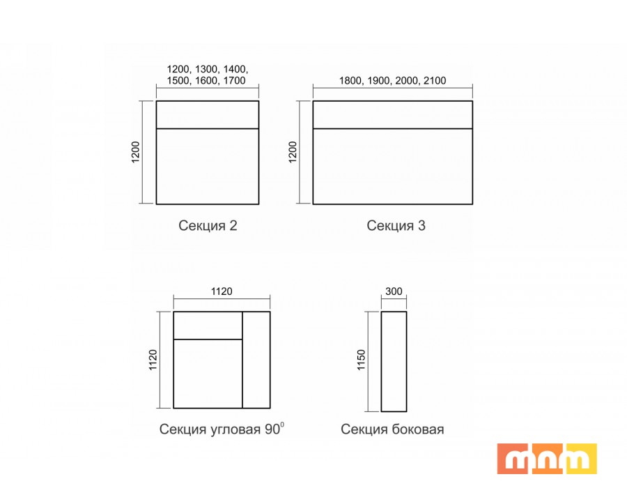 Габариты (ШхГхВ): 290х160х95 см (можно изменить). Обивка: ткань, экокожа, натуральная кожа. Более 1000 вариантов цвета.