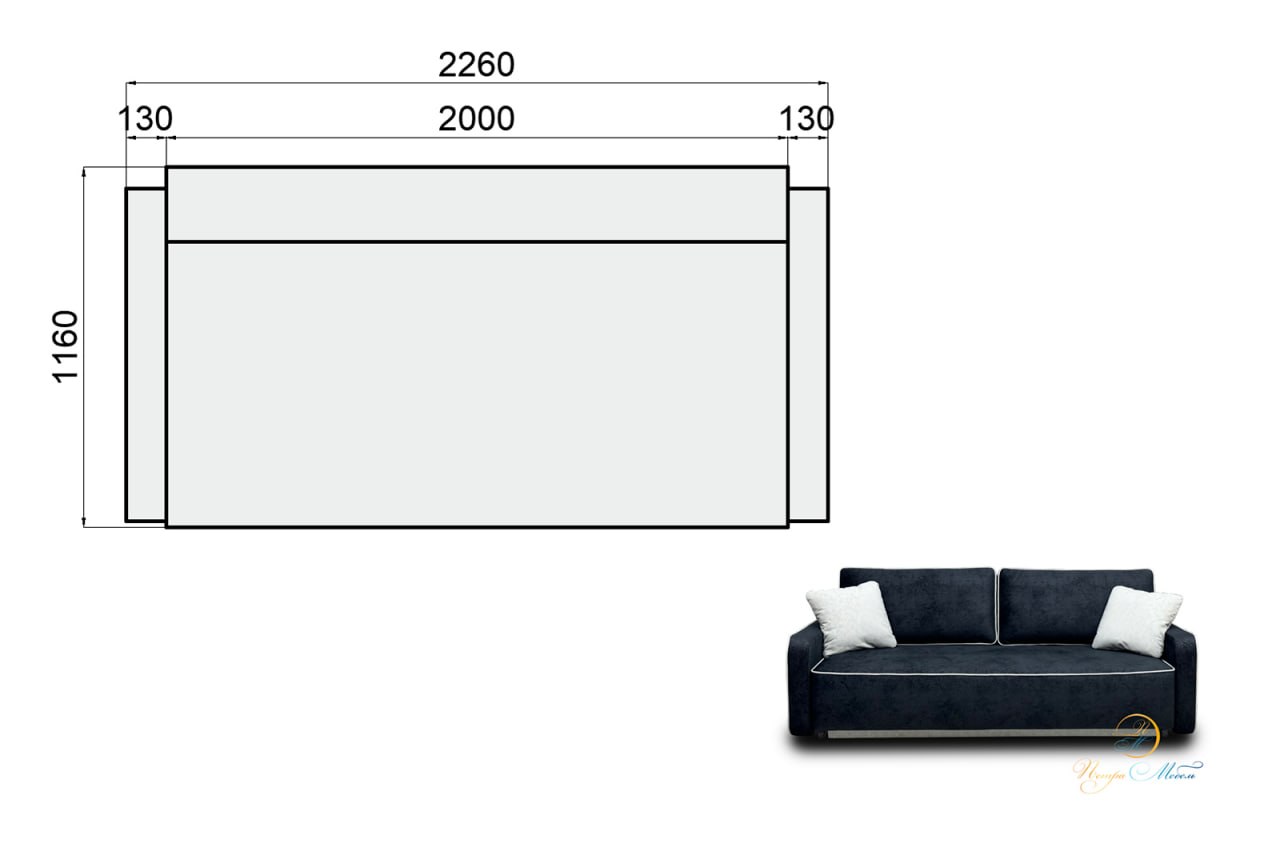 - Ширина спального места 1600 мм, длина-- 2000 мм. Ширина подлокотника –75 мм.