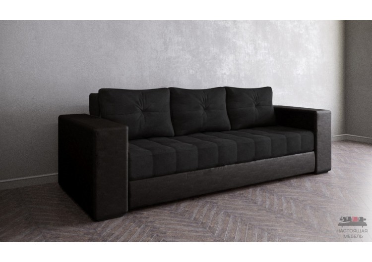 Диван «Константин» черный рогожка/экокожа