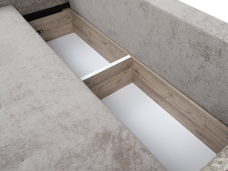 код 104571Материал обивки: мебельная ткань. Вид механизма: тик-так. Есть ящик для белья.