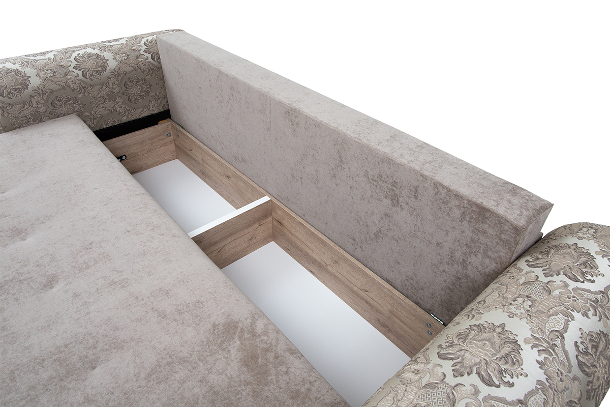 Способ раскладывания: потянуть переднюю часть дивана на себя, выдвинуть сиденье и поставить механизм на пол. Опустить спинку.