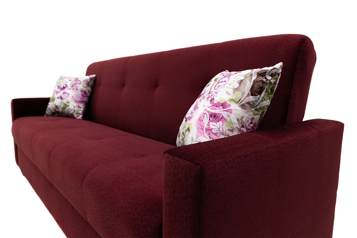 Диван-кровать Анжелика-1 — удобная, простая модель. Сидение и спинка на основе пружинного блока. Основание сидения и спинки – пиломатериалы хвойных пород. Имеется емкость для постельных принадлежностей. Боковины диван-кровати съемные. Может изготавливаться в разных цветовых решениях. Механизм трансформации — «книга»