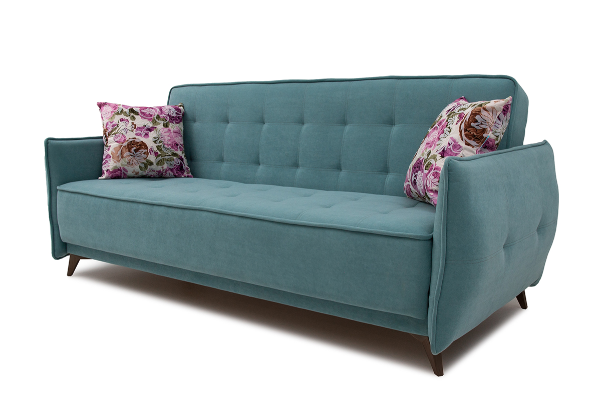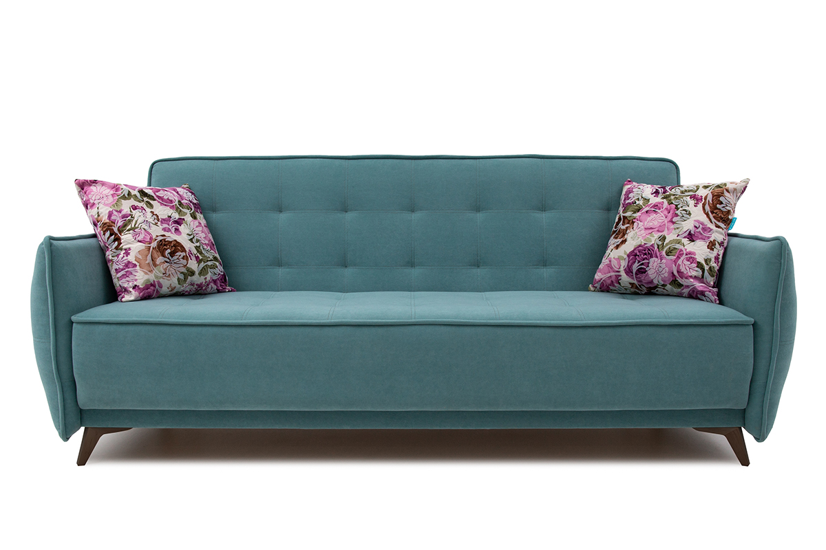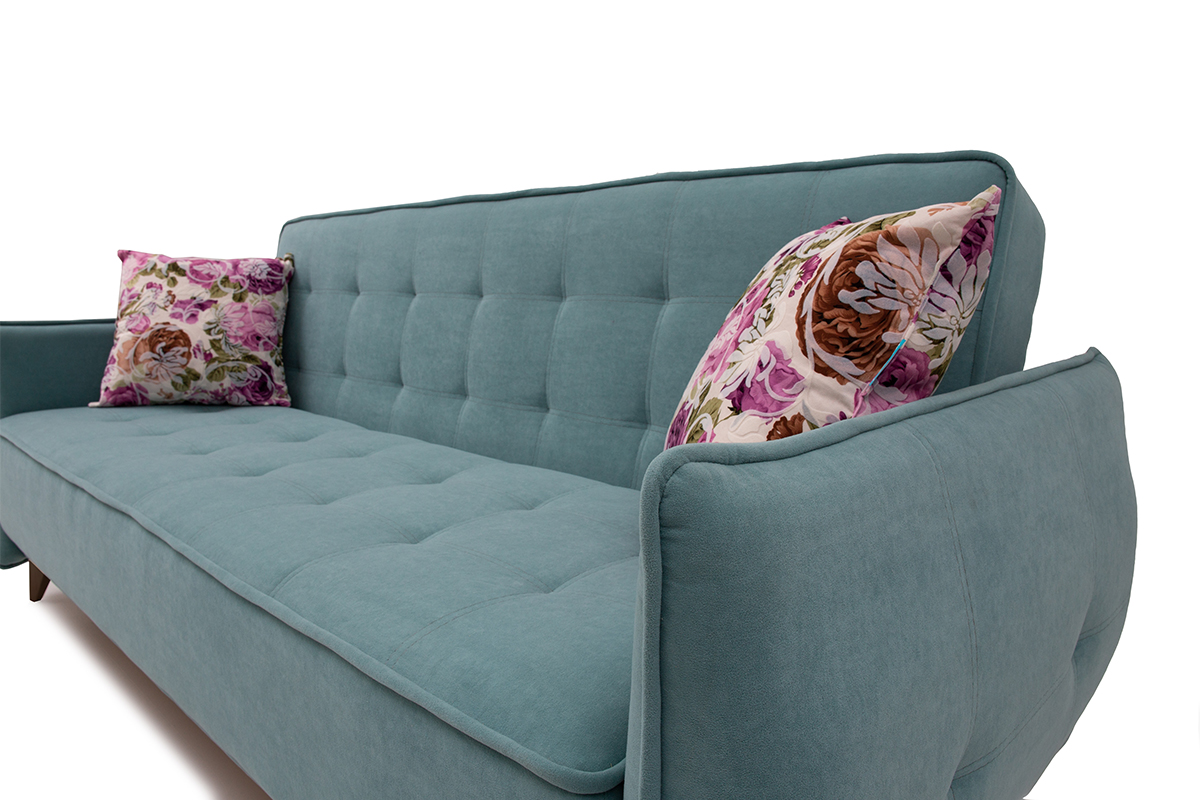 Диван-кровать Азалия — современная, практичная модель, предназначенная для ежедневного отдыха. Имеется ящик для хранения. Идеальное решение для небольшой гостиной городской квартиры. Диван на опорах из натурального массива, он будет удачно гармонировать с изделиями из натуральных пород дерева. Диван-кровать Азалия может комплектоваться креслом и банкеткой. Может выполняться в различных цветовых решениях. Механизм трансформации — «книга».
