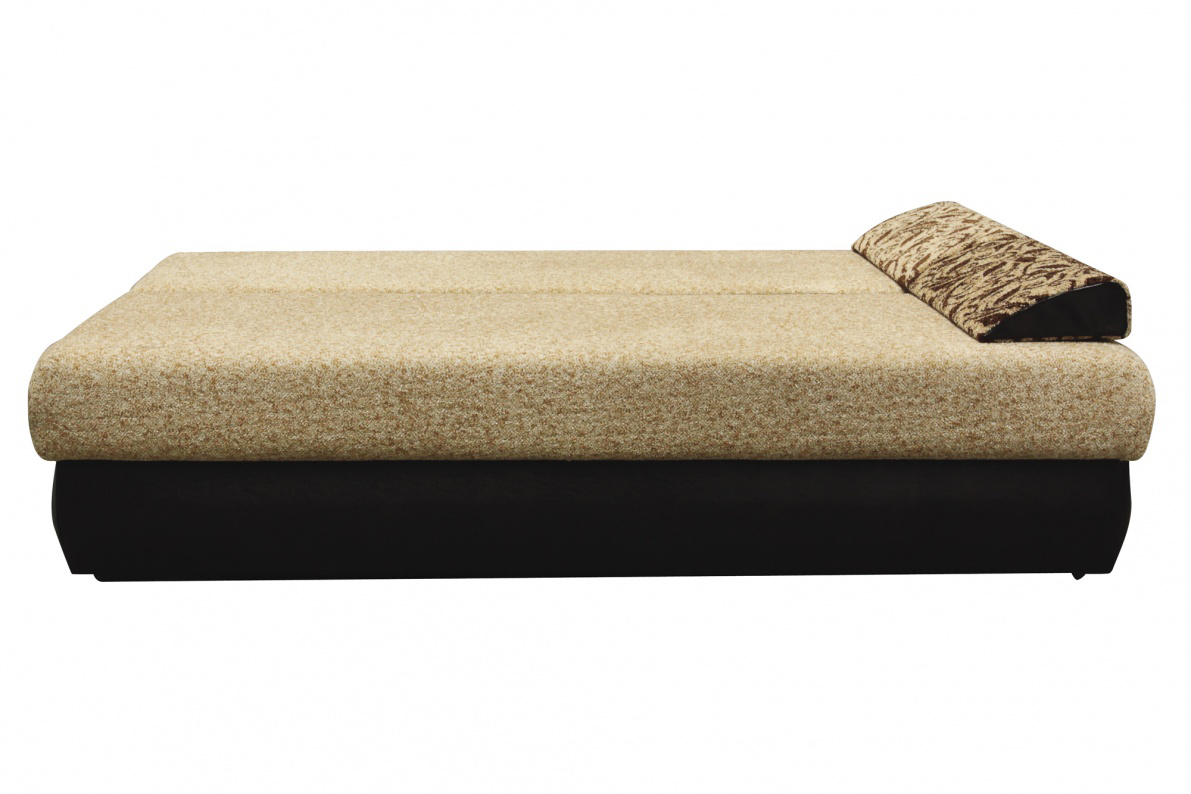 Удобный и простой в использовании раскладной диван в приятной на ощупь обивке из бежевого велюра. Прямоугольная спинка смягчена подушками, а накладные невысокие подлокотники добавляют эргономичности и комфорта. Укомплектован ящиком для белья. Несколько вариантов расцветки в ассортименте.