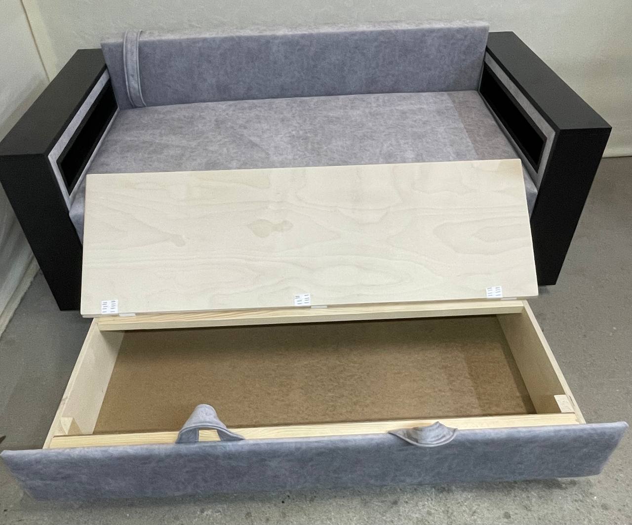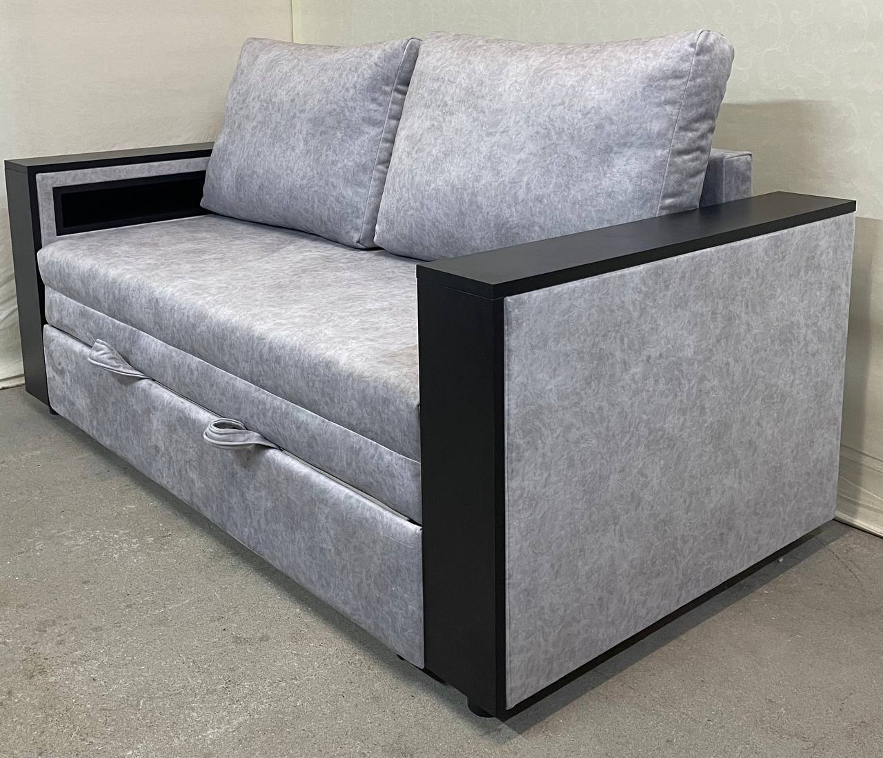 Мягкий трехместный диван со спальным местом. Имеется ящик для хранения.
