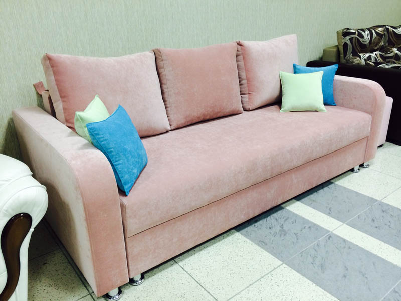 Диван-кровать «Forum» в данном исполнении обит тканью нежно розового цвета и комплектуется подушками, которые контрастируют с обивкой дивана, создавая яркий и незаурядный образ современного дивана в гостиную комнату.