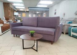 Хромированные опоры, большое спальное место, спинки-подушки, бельевой ящик.