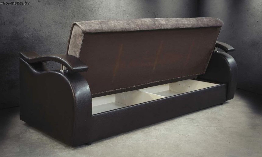 Удобный диван с металлическим каркасом и двумя вариантами спального места.