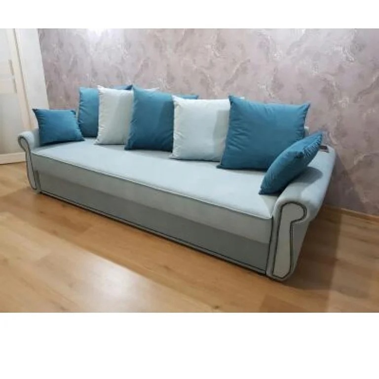 Диван оснащен механизмом трансформации и ящиком для белья. Возможны разные цвета обивки.
